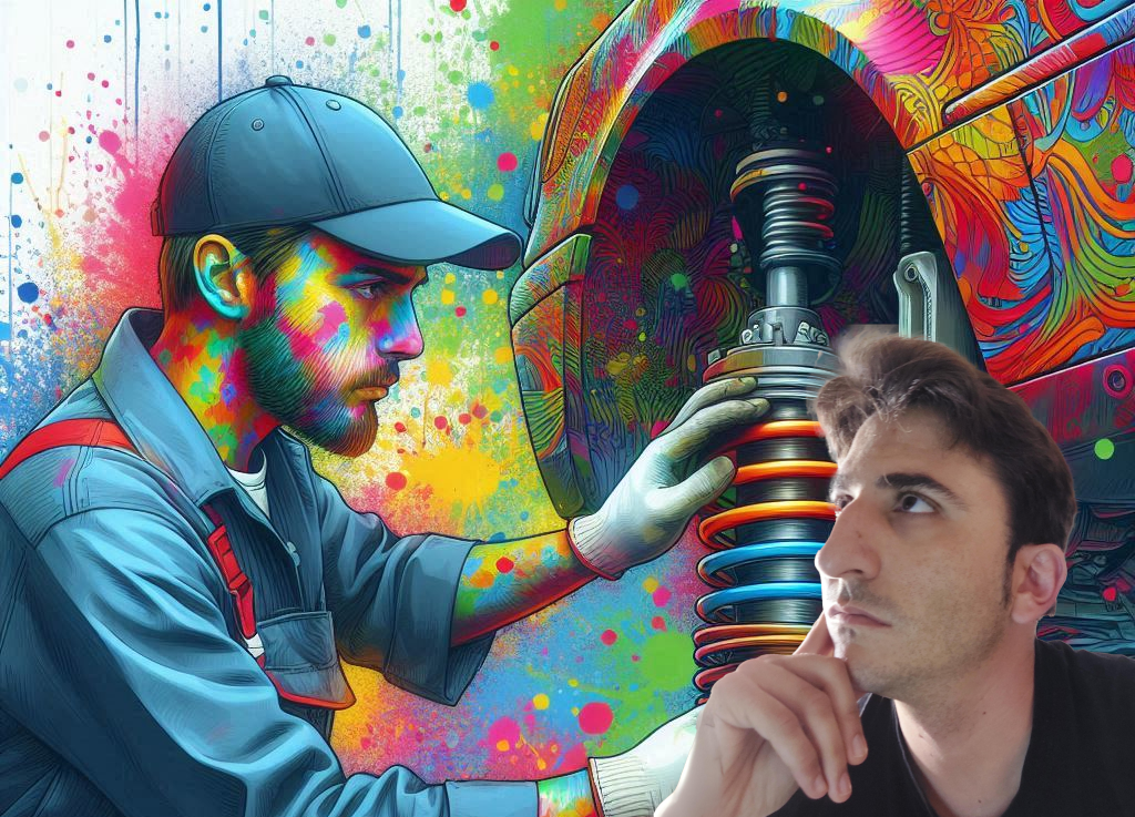 Una suspensión en mal estado puede darte la sensación de que montas en barco (y provocar mareos) Fuente: Autor con Dall-E